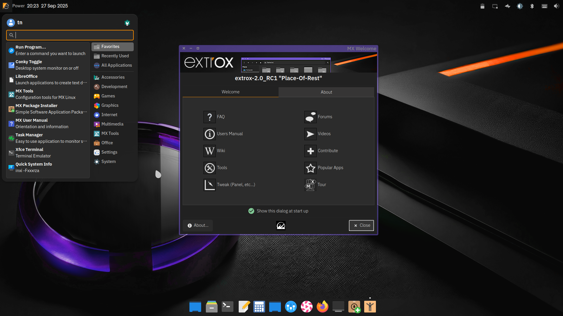 Welcome screen